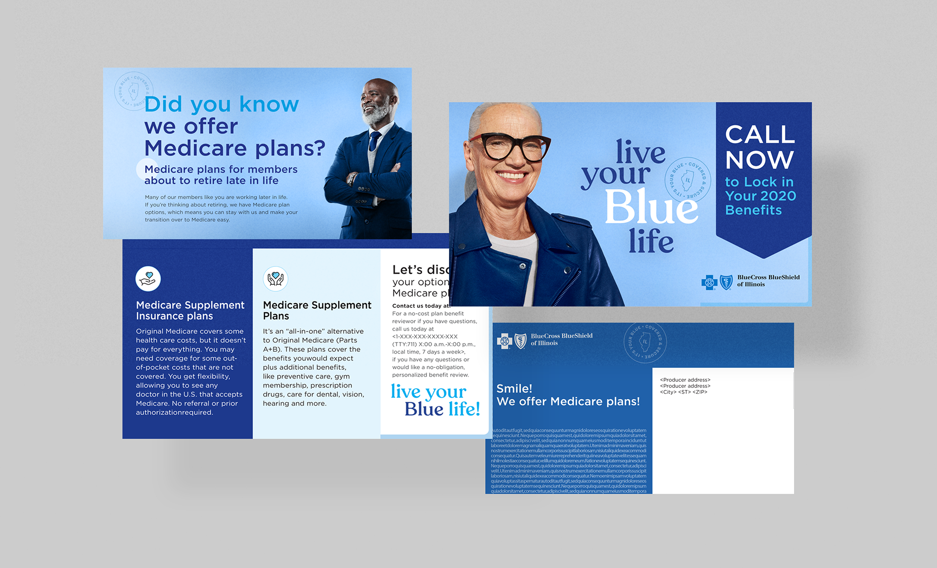 As a design contractor, I was brought on board by Traffik agency to work on their latest project of developing direct mail designs for Blue Cross Blue Shield.